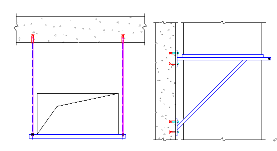 洞打好后,用水把墙洞浇湿,并冲净砖屑,在墙洞内先填塞一部分1:2水泥沙浆,埋入支架。